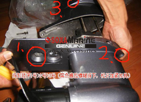 首先,拆下1或2個固定螺絲,然后取下3號橡膠固定蓋,松開緊固扣具,將螺旋槳和變速箱拔出。